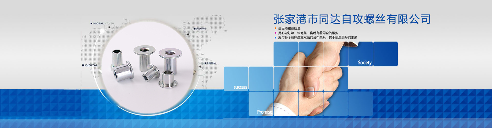 張家港市同達(dá)自攻螺絲有限公司主要生產(chǎn)螺絲和鉚釘產(chǎn)品,包括塑料件專(zhuān)用自攻螺絲、金屬專(zhuān)用自攻螺絲,梅花頭機(jī)械螺絲,點(diǎn)膠螺絲,組合螺絲等。 我們除擁有擁有完整、科學(xué)的IATF:16949質(zhì)量管理體系認(rèn)證及ROHS環(huán)保認(rèn)證,同時(shí)還具有獨(dú)特領(lǐng)先的技術(shù)和豐富的產(chǎn)品類(lèi)型,可為客戶(hù)提供完善的服務(wù)。 公司現(xiàn)擁有22套生產(chǎn)設(shè)備及檢驗(yàn)設(shè)備多套包括(投影儀、扭力計(jì)、硬度機(jī)、鹽霧機(jī)及光學(xué)檢測(cè)等)。擁有一批具有豐富經(jīng)驗(yàn)的高級(jí)技術(shù)人員和高級(jí)管理人員。采用優(yōu)質(zhì)原材料致力于開(kāi)發(fā)和生產(chǎn)高品質(zhì)的產(chǎn)品。企業(yè)目標(biāo):客戶(hù)滿(mǎn)意,預(yù)防為主,···